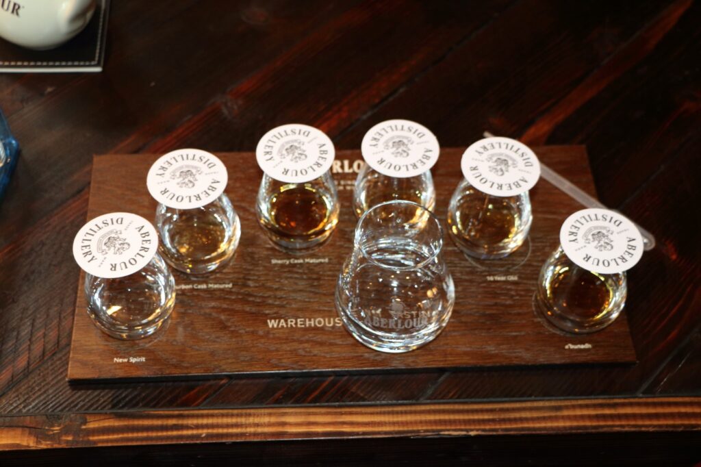 La visite se distingue par son approche directe et chaleureuse. Le centre d’accueil, habillé de bois brut, invite à la découverte sans solennité excessive. Un espace de mise en bouteille manuelle rappelle que, malgré sa notoriété internationale, Aberlour conserve un rapport très concret à l’artisanat. Voir le whisky s’écouler directement du fût, comprendre les gestes simples mais précis, renforce ce sentiment de proximité avec le produit.