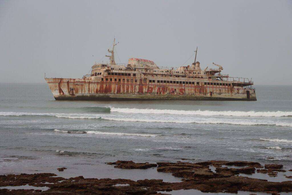 À l’est de la route, un autre désert rivalise avec le Sahara : la côte atlantique, avec ses hautes falaises, inspire respect et humilité. Elle est ponctuée çà et là par les cabanes et les cannes des pêcheurs nomades qui proposent leurs produits frais au bord de la route. En matière de nourriture, le choix est limité, ici c’est poisson ou poisson, et pour les estomacs robustes, la viande de chameau constitue le plat favori des habitants.