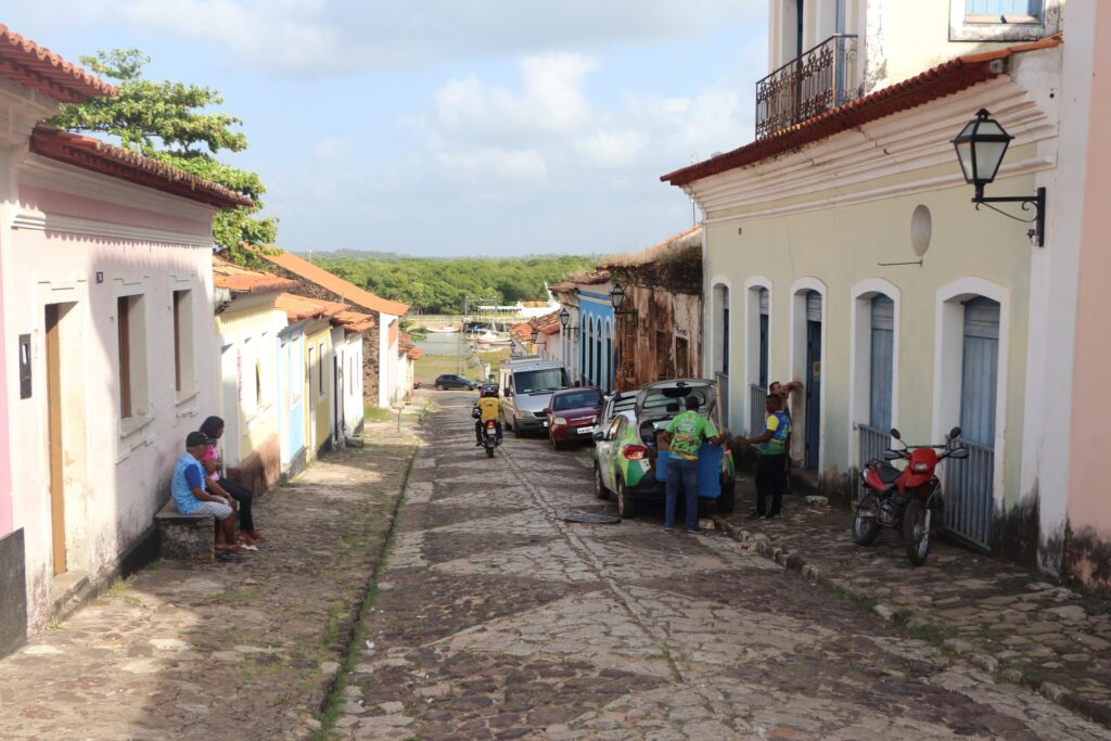 À l’arrivée, la Ladeira do Jacaré, bordée de maisons colorées et de jardins fleuris, nous accueille dans une ambiance paisible et authentique. Nous ressentons la douceur du climat, le parfum des bougainvilliers, et cette promesse d’immersion dans un territoire où se rencontrent patrimoine colonial et héritage afro‑brésilien. Alcântara s’annonce déjà comme un monde à part, suspendu entre mémoire et beauté.