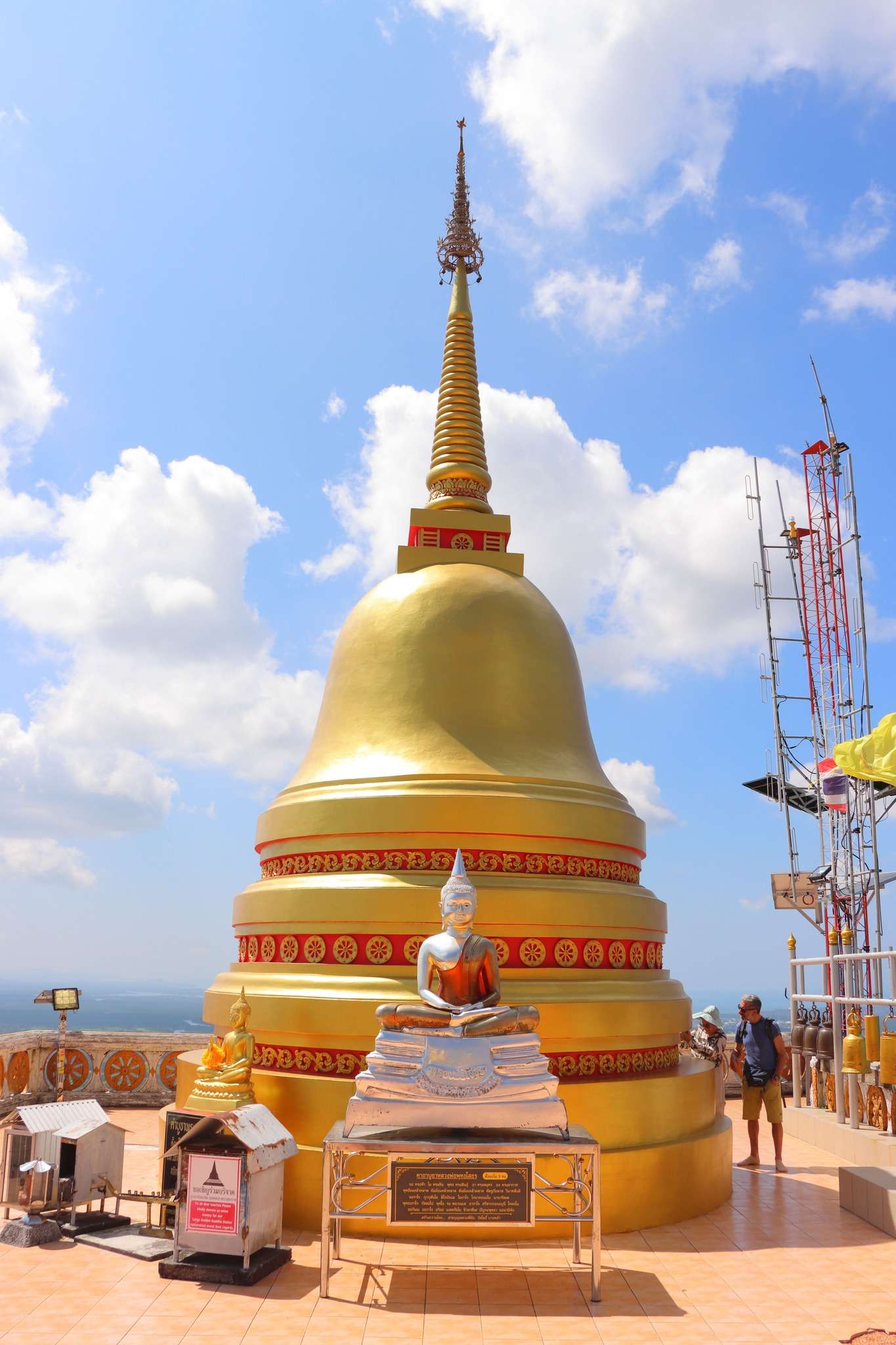 Au sommet, la récompense est à la fois visuelle et symbolique. La vue à 360 degrés déroule la mer, les collines et les rizières comme une carte vivante, et l’empreinte du pied du Bouddha, vénérée ici, nous rappelle la portée spirituelle de notre montée : marcher devient offrande, effort devient recueillement. La pratique religieuse se manifeste par des gestes simples et profonds : offrandes de fleurs et d’encens, prières murmurées, moments de silence. Le temple fonctionne comme un centre de vie spirituelle où la discipline monastique cohabite avec la ferveur populaire.