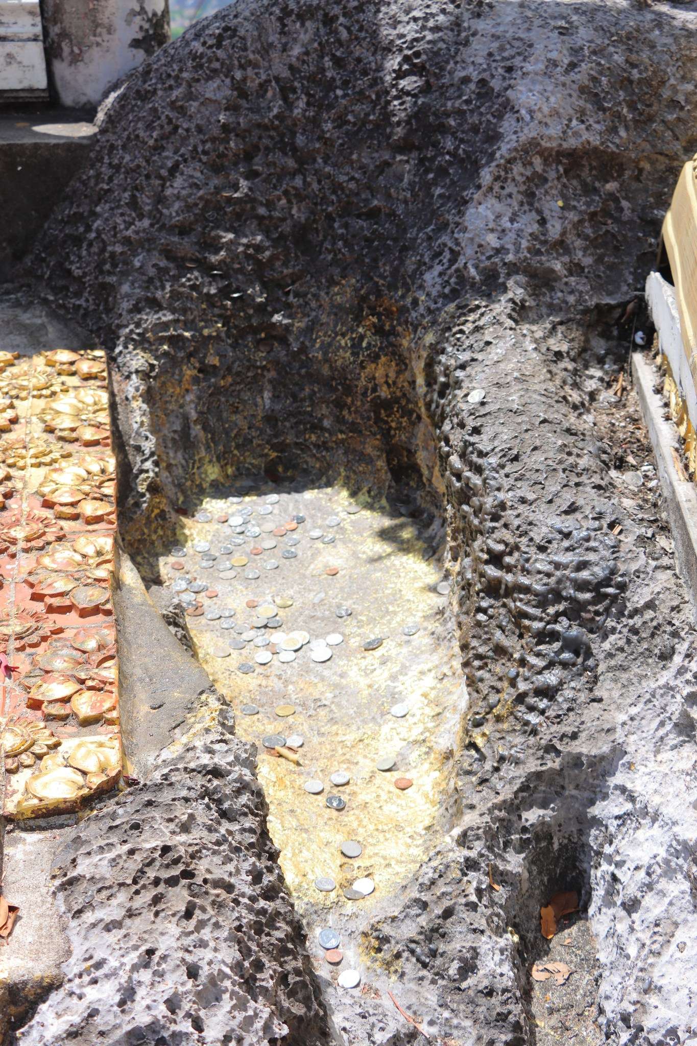 La géologie du site, omniprésente, explique aussi la richesse des lieux : falaises calcaires, cavités et bassins naturels témoignent d’un long travail de l’eau sur la pierre et créent des micro‑habitats où la végétation s’accroche. Les parois offrent des jeux d’ombre et de lumière qui magnifient les statues et les autels, et les grottes conservent parfois des traces d’occupations anciennes, faisant du temple un lieu à la fois naturel et archéologique. Les petites échoppes à l’entrée, modestes et utiles, proposent boissons et encas pour reprendre des forces après l’effort, sans altérer la solennité du site.