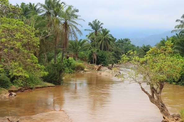 À mesure que nous avançons, le paysage se transforme. Les montagnes se dessinent à l’horizon, hérissées de blocs granitiques où s’accrochent quelques arbustes résistants. Les vallées s’ouvrent, traversées par des rivières au courant brun et paisible, bordées de palmiers à huile et de forêts galeries où scintillent des reflets verts profonds. Sur les berges, des enfants jouent dans l’eau, des femmes lavent le linge, et les hommes réparent leurs filets de pêche.