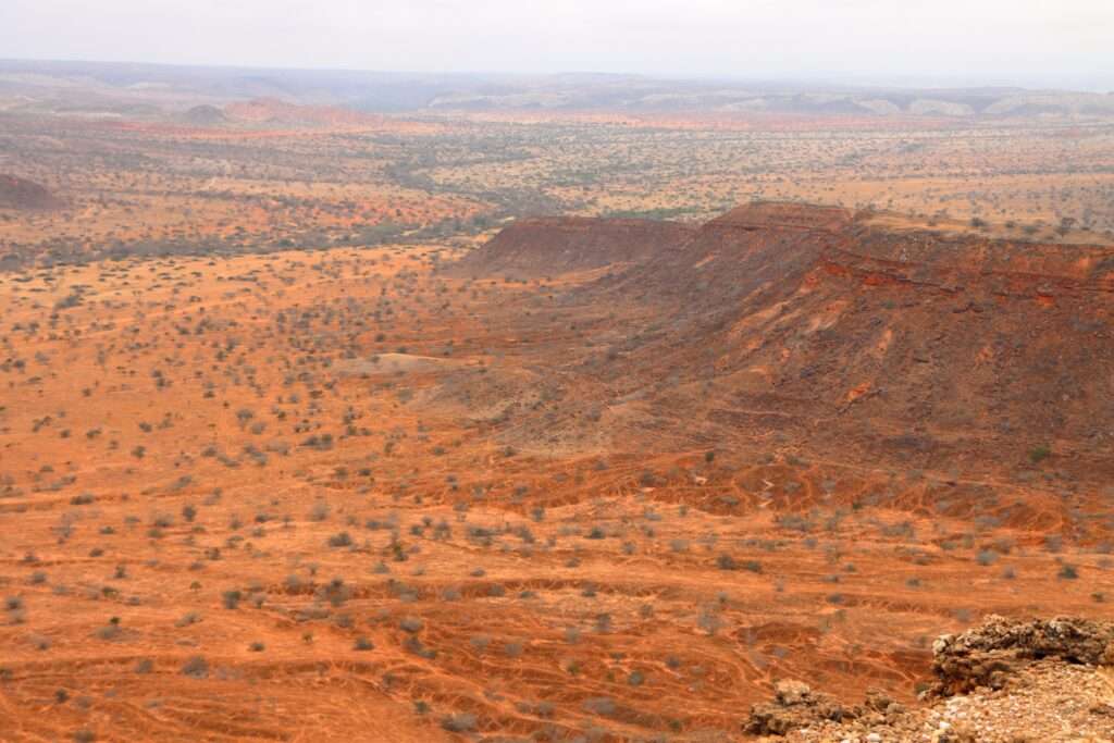 Puis, l’asphalte s’interrompt brutalement. Pendant près de cinquante kilomètres, nous progressons sur une piste ocre, rocailleuse et sinueuse, là où les travaux de la future route nationale semblent suspendus dans le temps. Les monts s’écartent, les vallées s’élargissent, et la végétation devient plus rare. Quelques acacias parasols (Acacia tortilis) et euphorbes candélabres ponctuent le décor. Parfois, une termitière géante rompt l’horizon — sculpture naturelle, vivante, fragile.