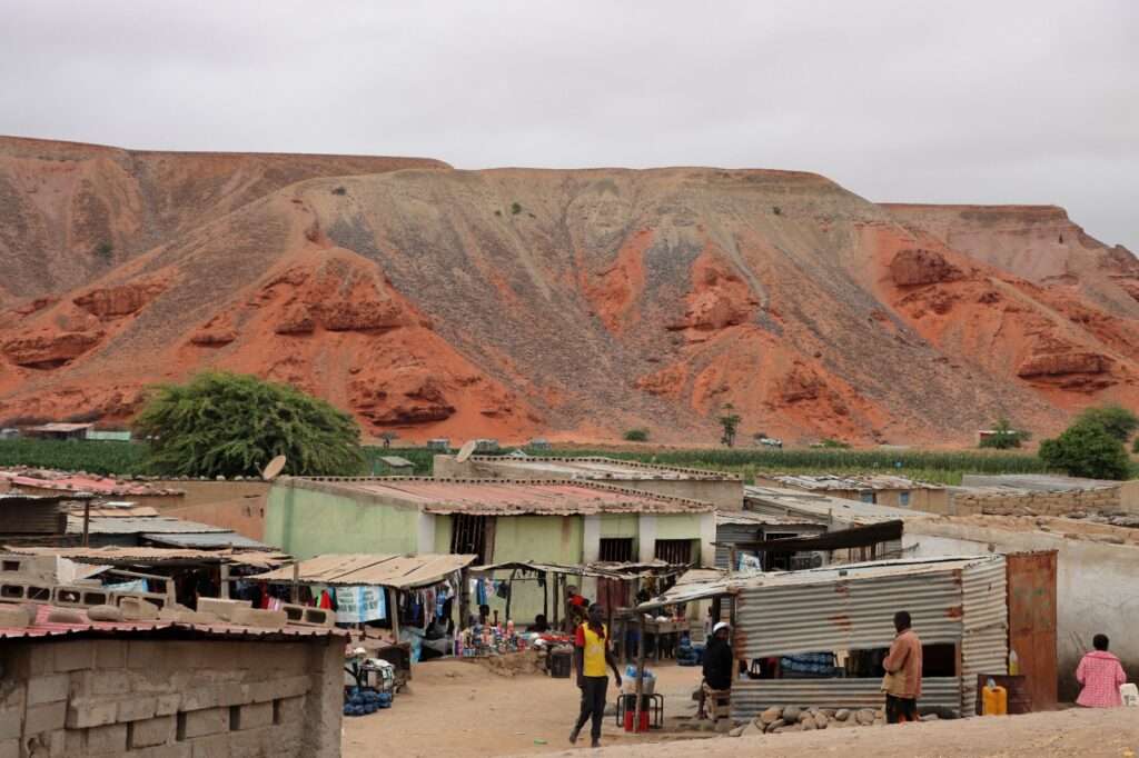 En quittant Lucira, la route serpente à nouveau. À la sortie du village, une oasis discrète surgit : papayers, bananiers, cultures vivrières irriguées par un mince filet d’eau venu des montagnes. Ce contraste brutal entre le vert et l’ocre est un rappel de la fragilité du climat local, semi-désertique, marqué par une pluviométrie annuelle inférieure à 200 mm. Cette humidité précaire suffit pourtant à nourrir la vie.