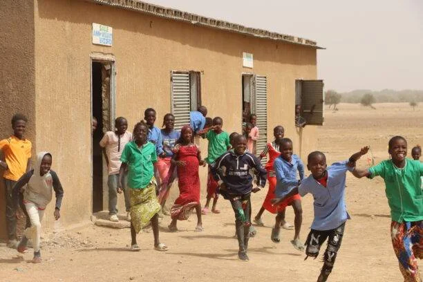 À notre arrivée dans la concession, l’accueil est d’une grande chaleur. Les femmes du village, élégamment drapées dans leurs pagnes colorés, nous sourient avec bienveillance, et les enfants, curieux et rieurs, nous observent timidement. On nous invite à nous asseoir sous l’ombre d’un grand arbre, à même le sol sur une natte tressée, dans la plus pure tradition sahélienne.