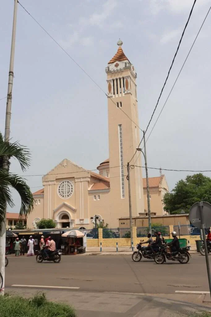 En sortant, nous jetons un dernier regard sur la façade imposante de l’édifice, un symbole de foi et de résilience pour la communauté chrétienne de Conakry.