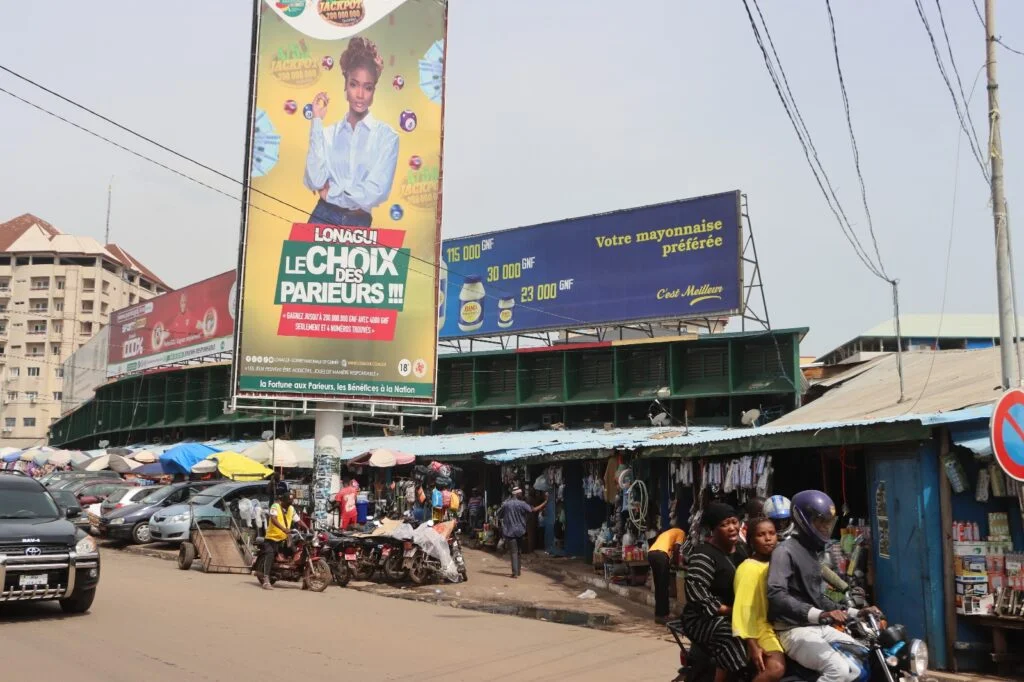 Malgré le tumulte, l’énergie du marché est contagieuse. Nous continuons à avancer avec prudence, fascinés par cette scène vibrante qui illustre si bien la vie quotidienne à Conakry.