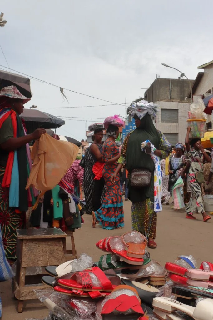Divers étals proposent des vêtements traditionnels et modernes, ainsi que des chaussures et des accessoires. On y trouve une gamme de produits pour la maison, allant des ustensiles de cuisine aux meubles. Le marché est souvent très fréquenté, avec une atmosphère animée et colorée. C’est un lieu où l’on peut vraiment ressentir l’énergie et la vitalité de Conakry.