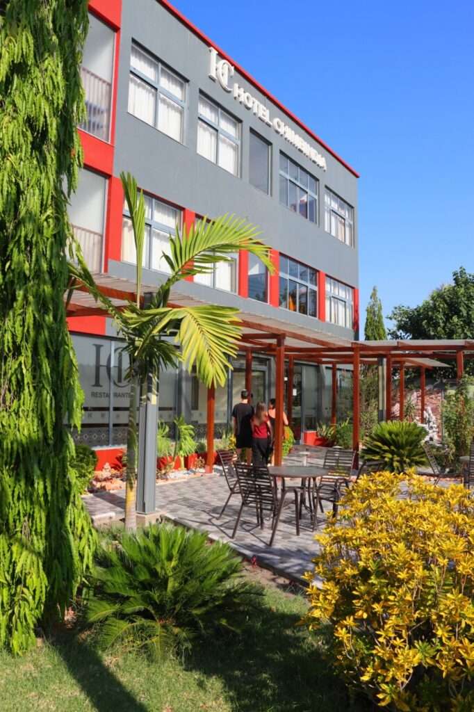 C’est finalement à Santa Clara, à la frontière namibienne, que nous trouvons une solution acceptable : l’Hôtel Chimbindda. Le contraste est saisissant : superbe extérieur, vaste jardin et grande piscine bien entretenue. Les chambres, à 53 000 kwanzas, sont spacieuses, impeccablement propres et agréablement fraîches. Nous croyons enfin avoir trouvé un havre avant le passage en Namibie.