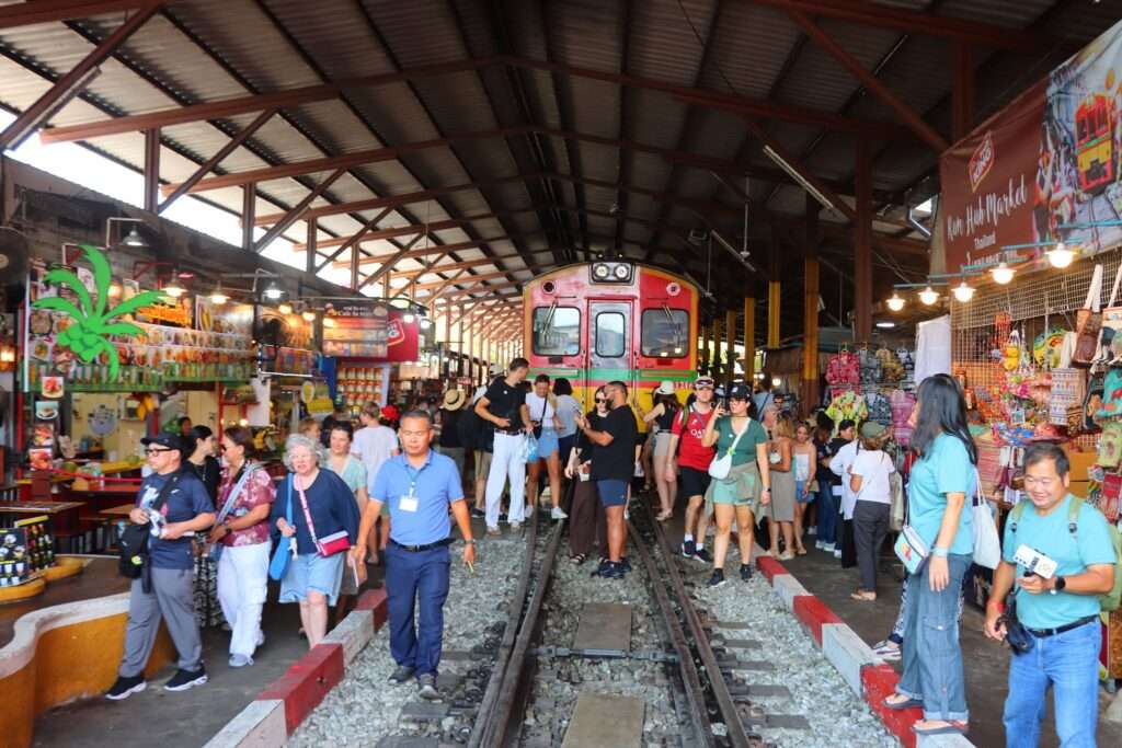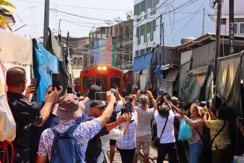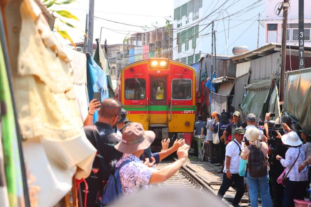 Au-delà de l’aspect spectaculaire, le marché de Mae Klong est aussi un exemple fascinant de cohabitation entre infrastructure moderne et vie locale. Ici, personne ne semble pressé, personne ne s’énerve. Chacun connaît sa place et son rôle dans cette chorégraphie quotidienne où la ville s’efface brièvement devant le train avant de reprendre immédiatement son rythme.