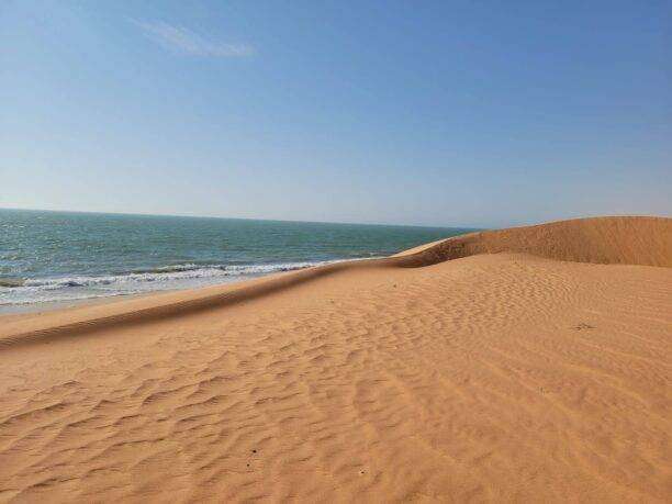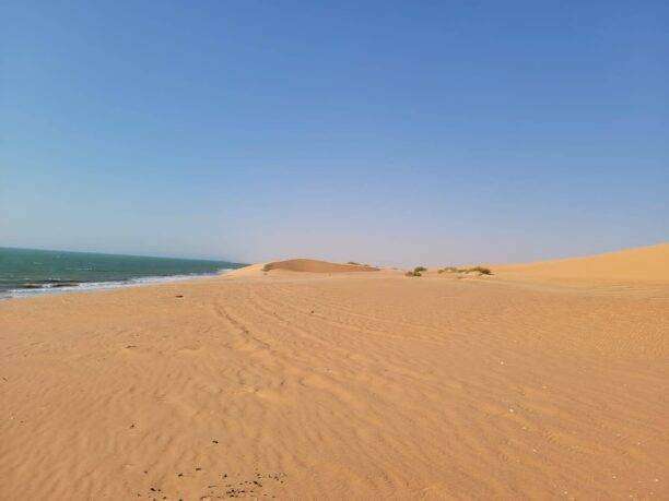 Notre périple débute par une traversée saisissante en direction du campement, niché entre dunes et lagunes, au cœur du territoire des Imraguens, ces pêcheurs légendaires du Banc d’Arguin. L’arrivée se fait dans une atmosphère hors du temps, où le confort cède le pas à l’authenticité.