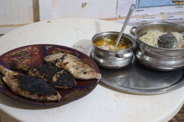 Autour de la table commune, l’accueil se fait chaleureux. On nous sert un délicieux riz au poisson, parfumé, généreux. C’est le plat emblématique du Banc d’Arguin, où le poisson — souvent mulet, dorade ou mérou — est le roi incontesté de l’assiette. Point de viande, ni volaille : ici, tout vient de l’océan, transmis avec fierté par les pêcheurs Imraguens, qui perpétuent des techniques ancestrales de pêche durable.