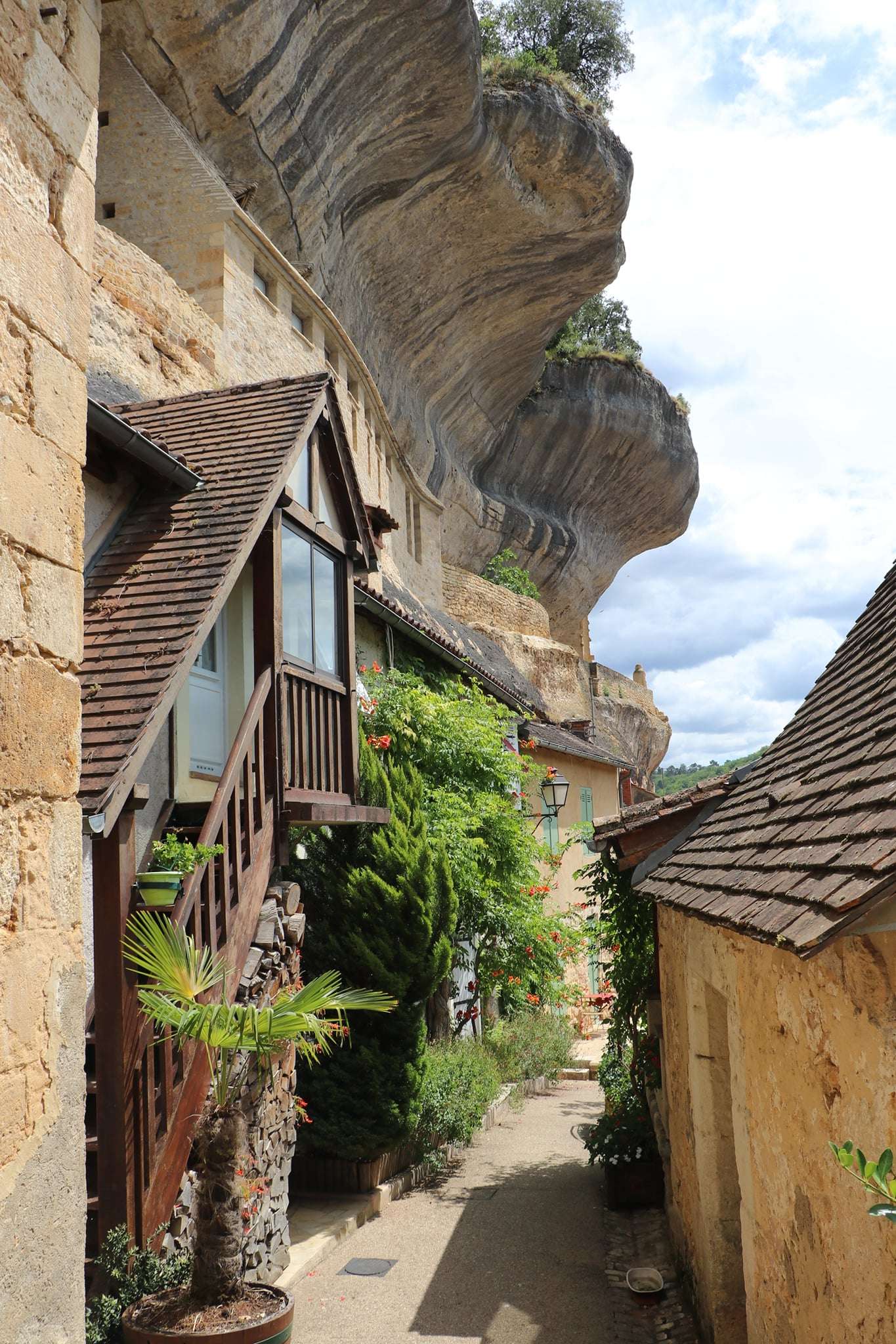 La Vézère, en contrebas, a creusé patiemment des abris sous roche, ouvrant des cavités qui deviendront des refuges, des habitats, puis les fondations d’une véritable cité troglodytique.