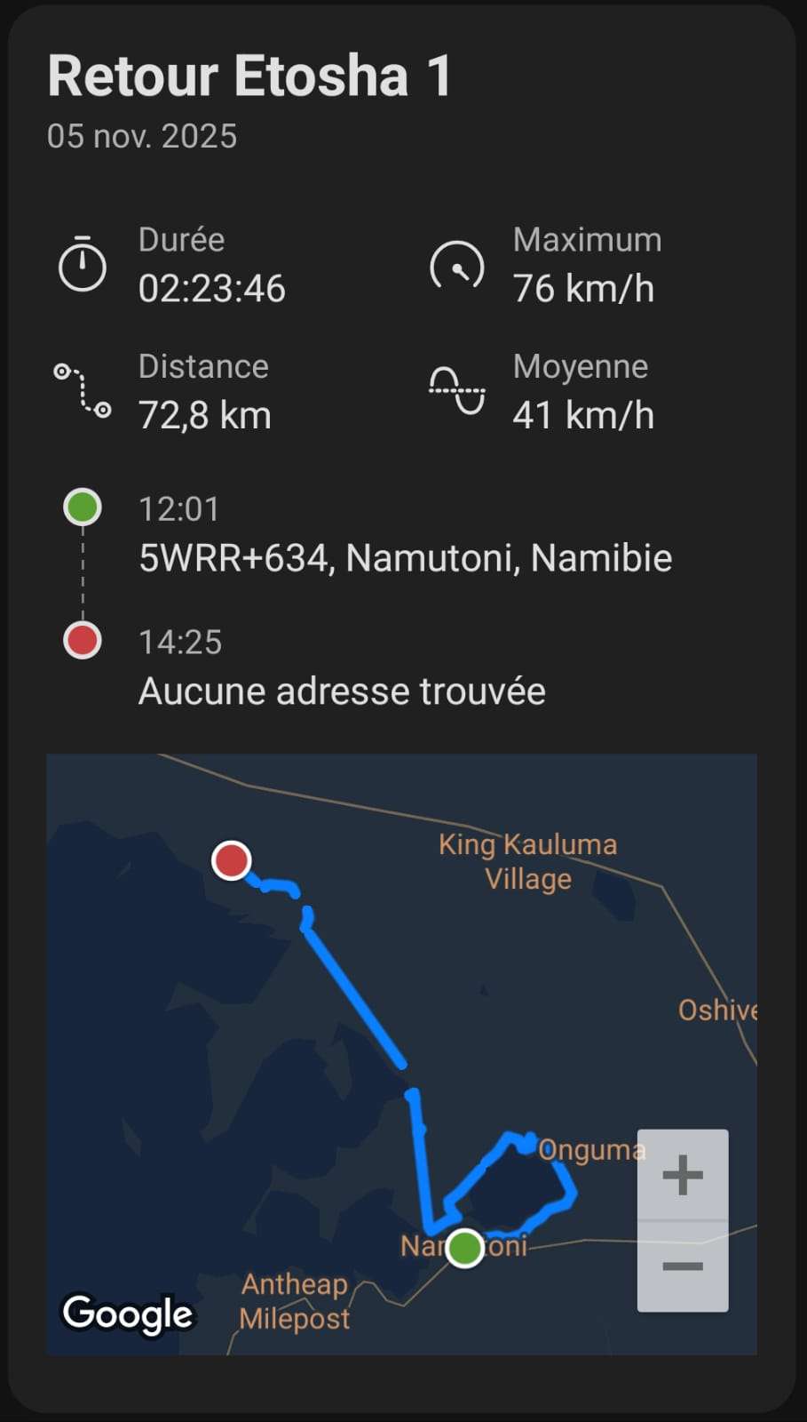 La logistique humaine se mêle aux observations naturelles. Le manque de carburant rencontré dans plusieurs postes du parc — rupture aussi constatée à Namutoni, Olifants et Okaukuejo — a conduit à un détour logique vers Andersson’s Gate pour se réapprovisionner, un rappel concret que la sécurité et la planification sont parties intégrantes d’un terrain d’étude sur le long cours. Le véhicule offre une plateforme d’observation stable et mobile, mais c’est la gestion des ressources qui garantit la possibilité d’observer ces écosystèmes dans la durée.