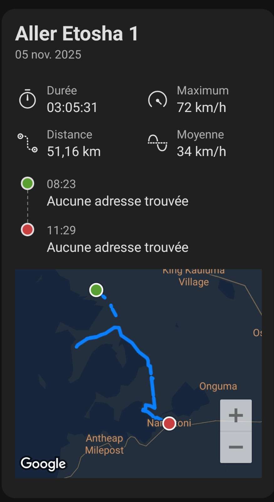 Halali, c’est cela : une halte rugueuse mais précieuse, une oasis imparfaite mais essentielle. On y dort sous les étoiles, on y mange avec les guêpes, on y observe avec gratitude. Et quand on repart, on emporte avec soi le souvenir d’un lieu où la savane parle bas, mais juste — même à travers les pinces d’un scorpion.