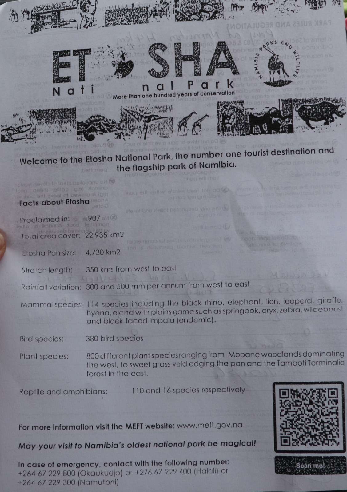 • Dans Etosha, les distributeurs existent mais peuvent être capricieux : mieux vaut ne pas y arriver à sec.