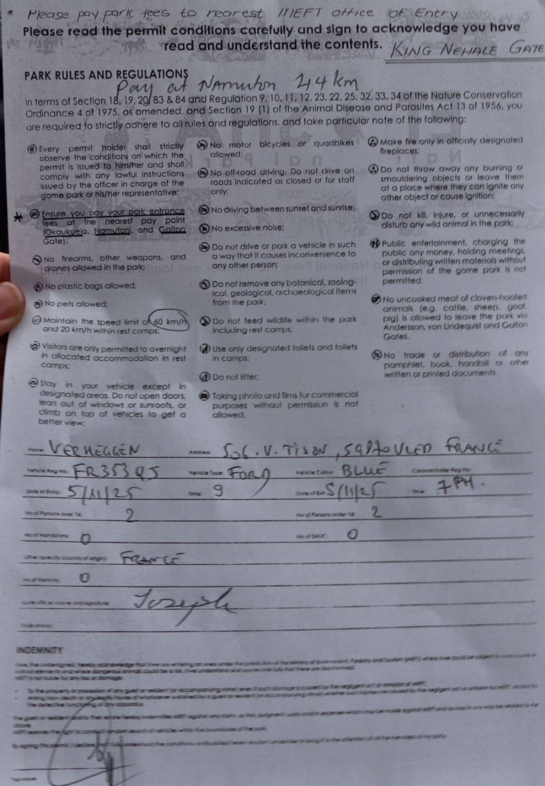 Nous quittons Oshakati dès l’aube, impatients de retrouver ce parc mythique dont le simple nom évoque poussière, sel et horizons infinis. Deux heures de route nous séparent de la King Nehale Gate, mais l’excitation balaie toute notion de distance. Peu importe les kilomètres, peu importe que nous soyons appelés à revenir très bientôt pour cinq nuits complètes dans le parc : aujourd’hui, l’urgence est d’y être, tout de suite, maintenant.