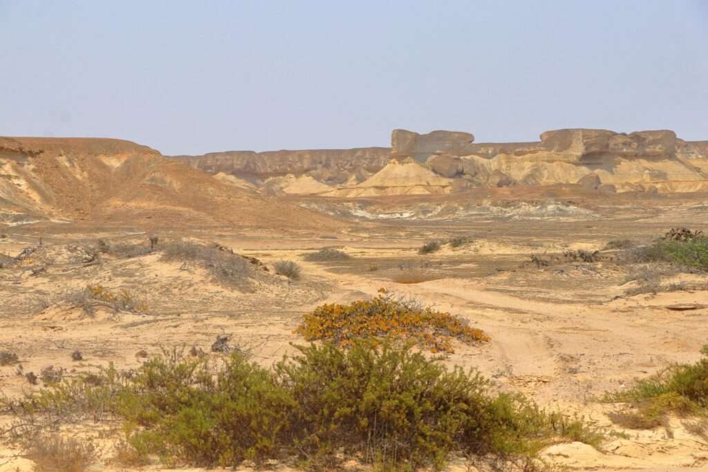 Nous décidons d’emprunter en premier lieu la piste vers le phare. Très vite, le bitume disparaît, remplacé par une route de terre et de gravier qui serpente entre dunes et plateaux. Par endroits, la piste longe des lits de rivières asséchées — les cahmbas — où quelques acacias résistent à la sécheresse. On traverse parfois des zones de sable meuble, d’autres tapissées de cailloux tranchants. Le trajet exige prudence et véhicule adapté : un 4×4 est indispensable, et la progression se fait souvent à faible allure, le regard happé par l’immensité environnante.