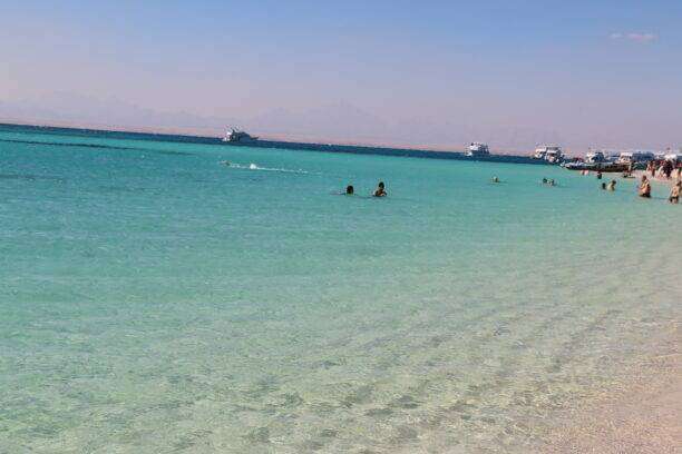 Le soleil atteint son zénith quand nous arrivons à Giftun Kebir, la grande sœur plus sauvage. Ici, nous avons tout le loisir de poser nos serviettes sur le sable chaud, les pieds dans l’eau cristalline à plus de 25 °C, même en plein février. Entre deux baignades, le bateau devient café flottant : thé sucré, jus de fruits frais, rires et instants de farniente. L’île déroule ses plages vierges, bordées de filaos qui offrent une ombre bienvenue.