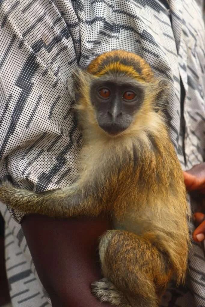 Nous avons ensuite rencontré un vervet vert callitriche apprivoisé, un singe au pelage verdâtre et au caractère espiègle, qui ajoutait une touche de charme à notre visite. Enfin, nous avons observé la technique de fumage des poissons, un savoir-faire traditionnel qui préserve et enrichit les saveurs.