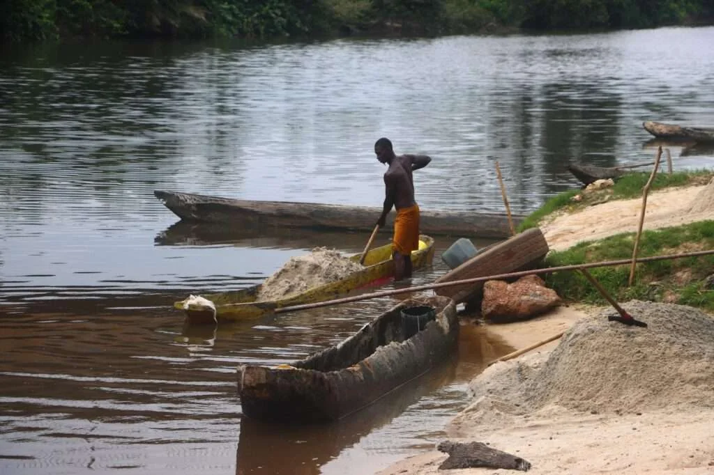 Poursuivant notre exploration, nous avons découvert des goyaviers dont les fruits ne seront mûrs qu’en septembre. Puis, nous avons retrouvé la rivière où des plongeurs s’affairaient. Comme déjà observé en Guinée, ils plongent pour récupérer le sable au fond de la rivière, qu’ils entassent sur les bords et vendent aux passants. Une remorque de tricycle leur rapporte 10 000 FCFA, une misère.