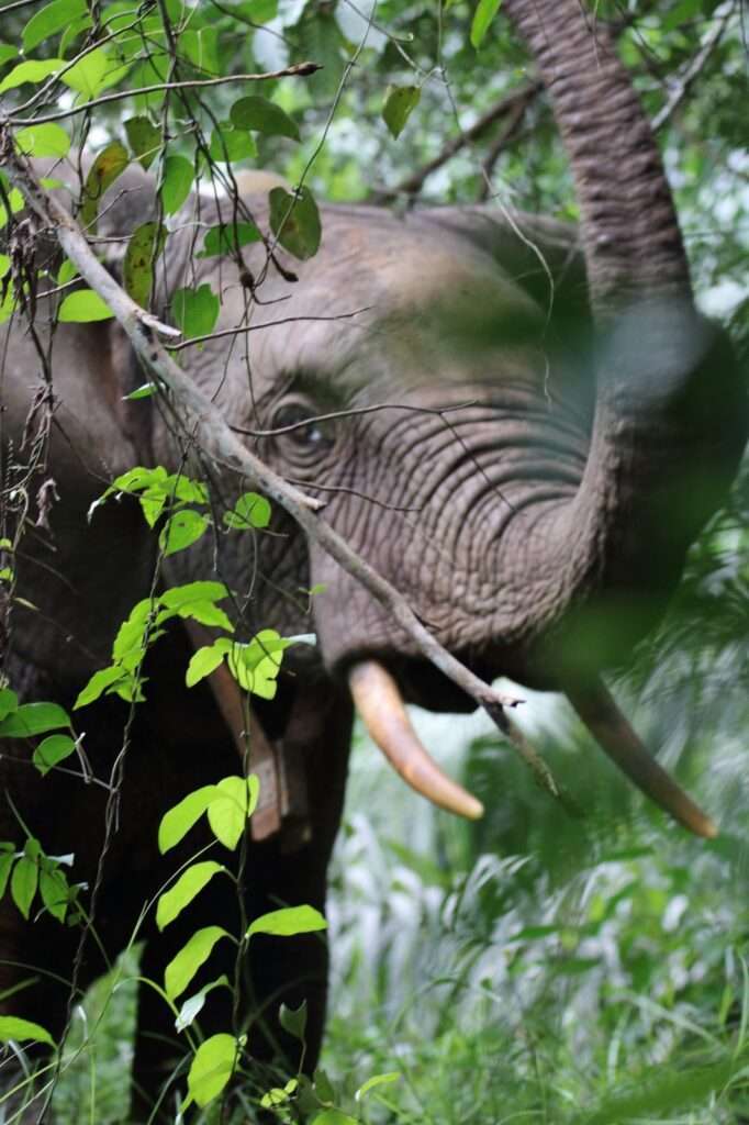 Après une longue marche silencieuse, nous avons enfin repéré notre premier éléphant. C’était un moment magique. À travers les branches épaisses, nous pouvons voir ces majestueuses créatures se déplacer avec une grâce inattendue. Les éléphants de forêt sont plus petits que leurs cousins de savane, mais leur présence est tout aussi imposante.