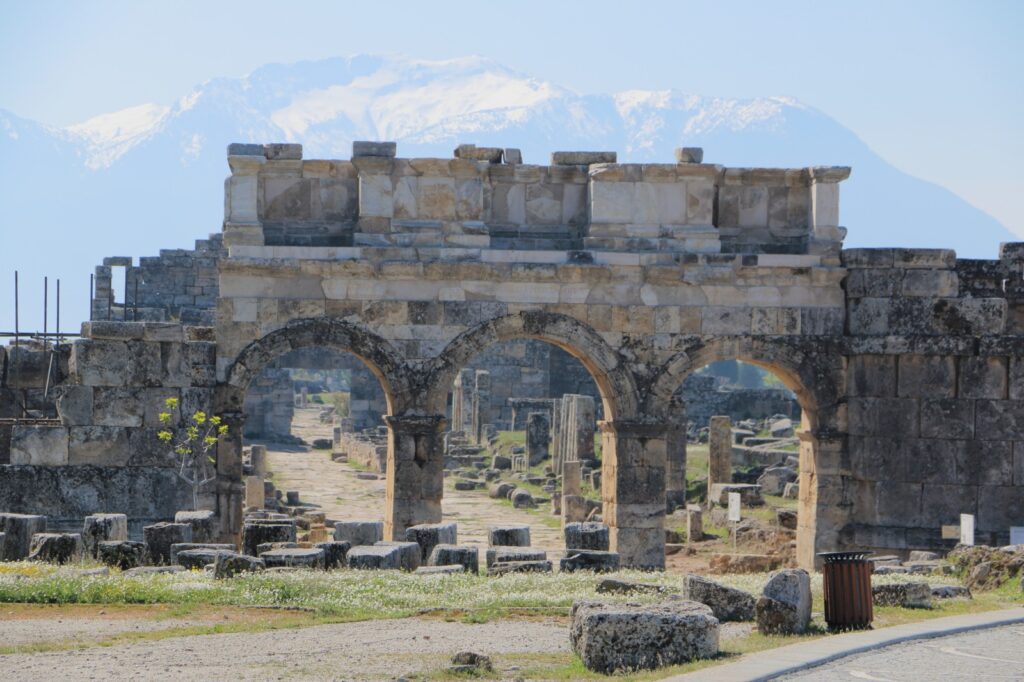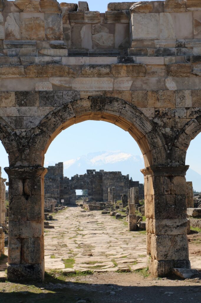 Au terme de notre exploration, nous sommes émerveillés par la cohabitation fluide des styles architecturaux. Chaque colonne dorique ou fronton triangulaire évoque l’Antiquité hellénistique, chaque arc de triomphe ou voûte signalant la main de Rome . Les restes romains se mêlent ici aux signes byzantins : nous remarquons par exemple, au-dessus de la porte nord de la cité, un lintel en plein cintre gravé d’une croix chrétienne – dernier rappel de l’ère paléochrétienne de l’édifice . Bercés par le souffle léger du vent, imprégnés de l’odeur du pin et de la terre brûlée, nous quittons Hiérapolis avec la conviction d’avoir touché du doigt le temps : les pierres racontent une histoire vivante, où passé sacré et présent se superposent dans l’air des collines.