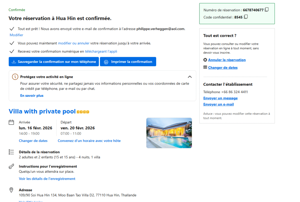 À Hua Hin, après la route et l’effervescence douce de la côte, nous aspirions à un lieu où poser nos valises autrement, dans l’intimité et le confort. C’est via Booking que nous avons trouvé cette villa indépendante avec piscine privée, et dès l’arrivée, le choix s’impose comme une évidence. Ici, tout invite à ralentir, à vivre dedans-dehors, à savourer pleinement le temps.