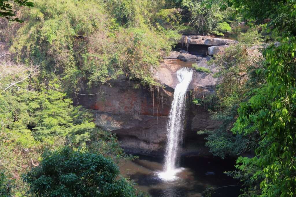 Plus loin, le sentier de Haew Narok nous attire. Cette chute, plus haute et plus sauvage, révèle toute sa puissance après la mousson. L’air y est saturé d’humidité, vibrant des chants d’insectes et des cris d’oiseaux. Les biologistes y observent régulièrement des espèces rares : langurs, écureuils volants, et parfois, dans les zones les plus reculées, le discret léopard indien.