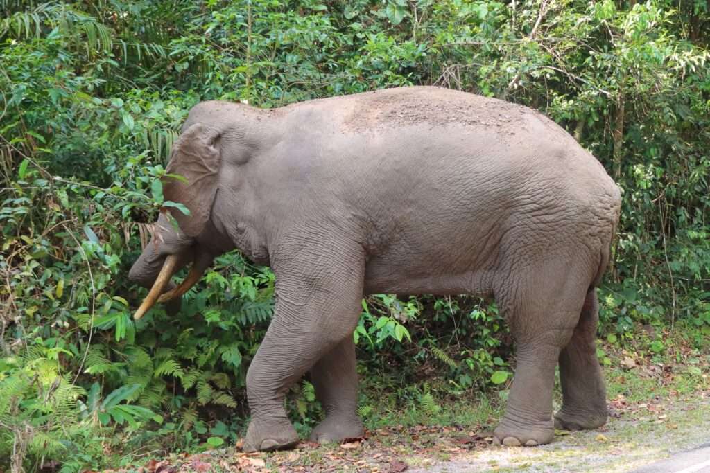 Mais le moment le plus saisissant survient sur la route, lorsqu’un éléphant d’Asie (Elephas maximus indicus) surgit des fourrés. Immense, couvert de poussière, il avance lentement, indifférent aux voitures arrêtées. Il traverse la route avec une majesté tranquille, puis disparaît dans la végétation avec une grâce surprenante pour un animal de cette taille. Une rencontre rare, puissante, qui rappelle la cohabitation fragile entre humains et faune sauvage.