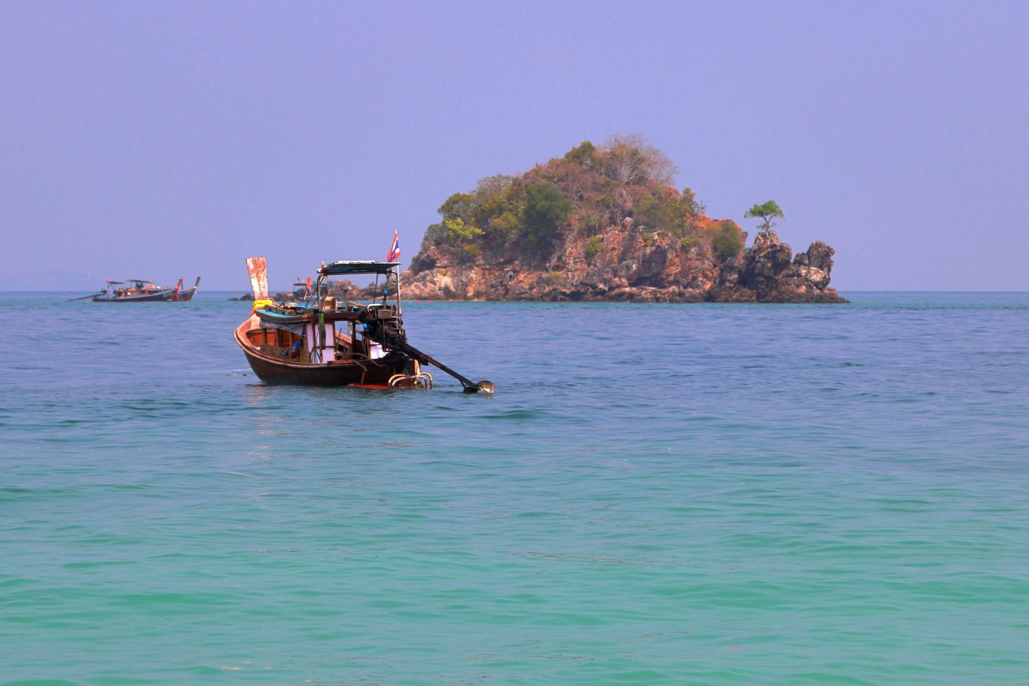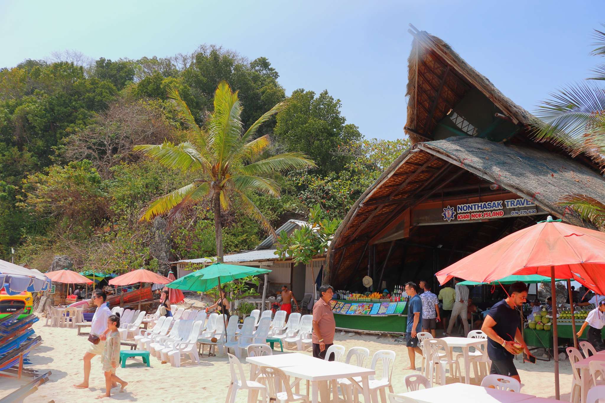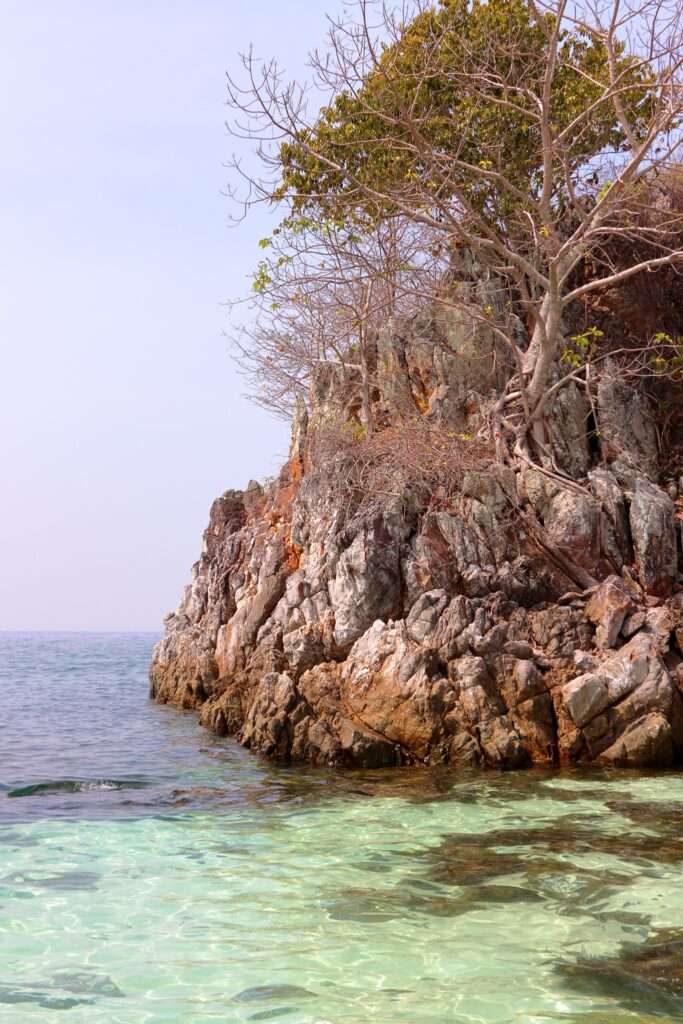 À peine une vingtaine de minutes après avoir quitté le port, nous faisons halte à Khaï Island, première étape de plage et de snorkeling. La mer y est si limpide que les poissons multicolores se révèlent à l’œil nu, sans même plonger la tête sous l’eau. Le sable clair, les rochers abrupts et les eaux turquoise composent un décor qui semble avoir été dessiné pour émerveiller les voyageurs.