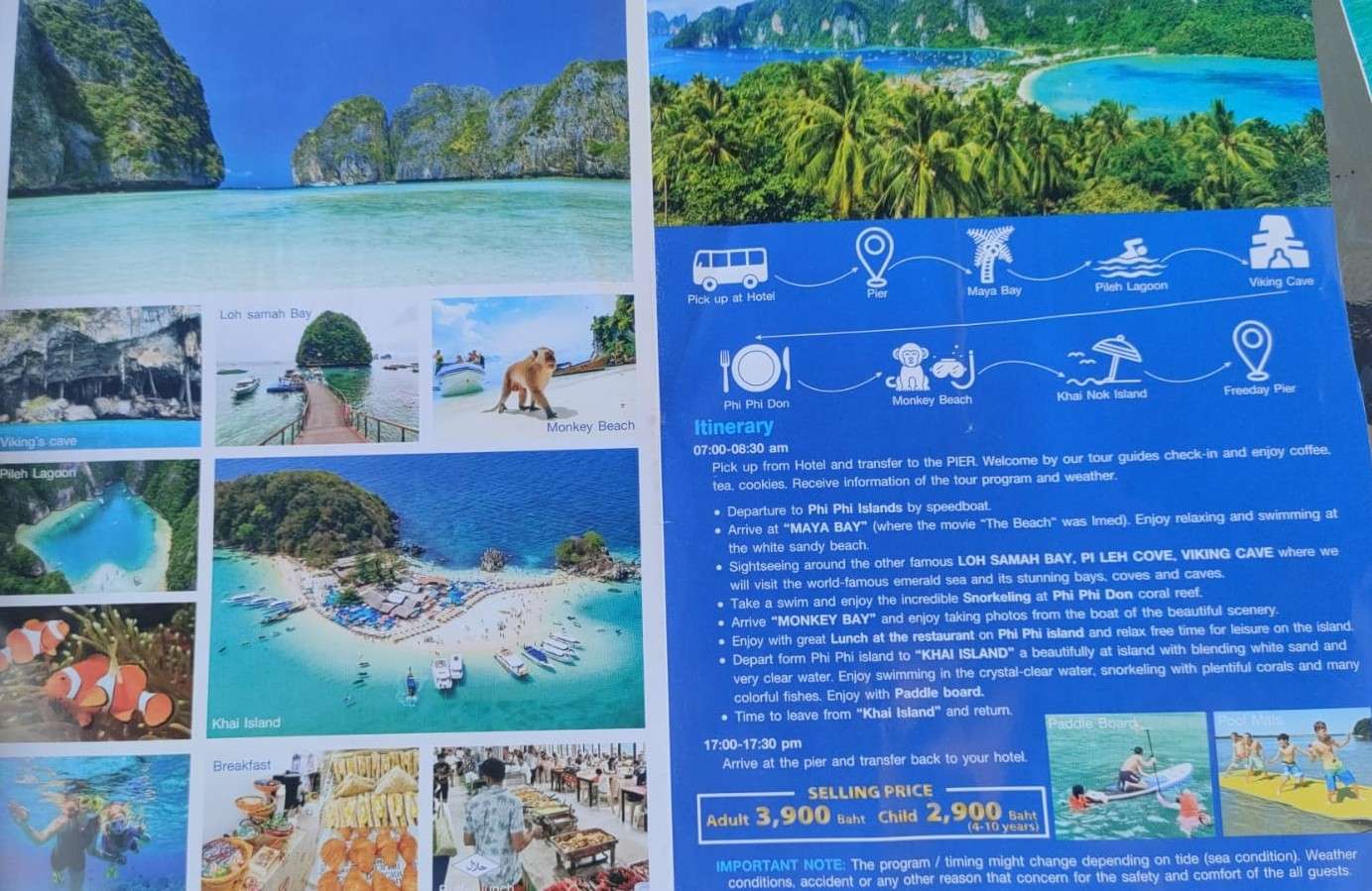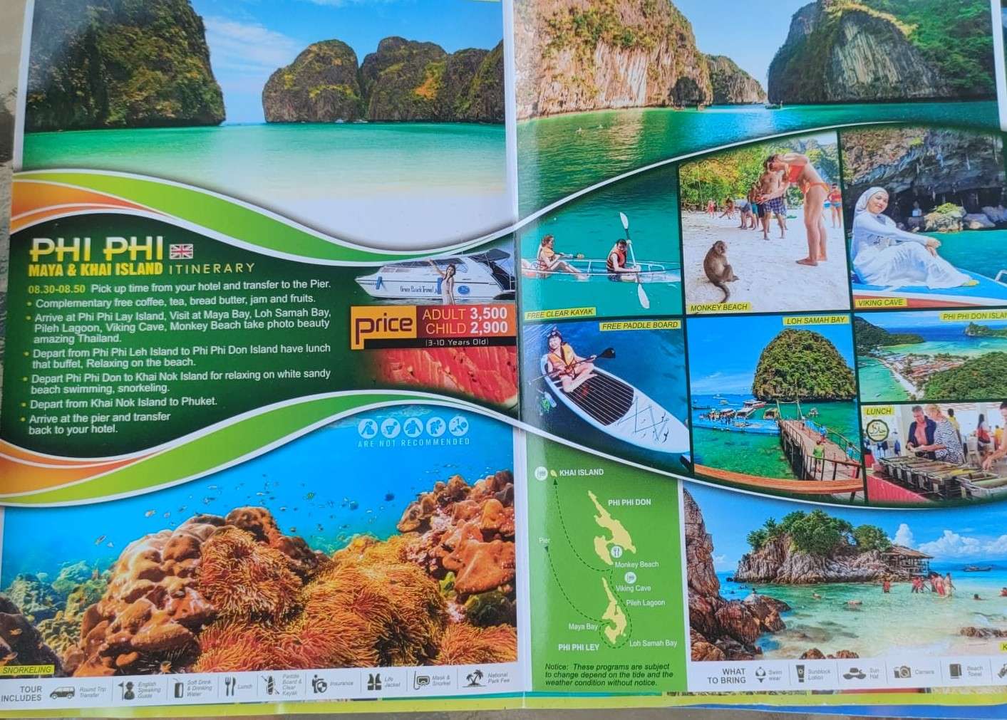 - Prix indicatifs : collation/activité courte ~780 THB; packages demi‑journée tout compris souvent autour de ~2 400 THB selon inclusions et transferts (vérifier l’offre précise).