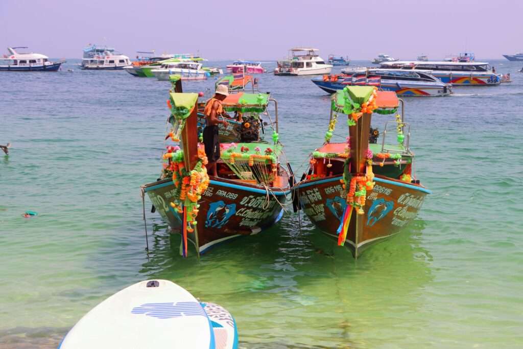 Ces îles furent longtemps le domaine de pêcheurs et de communautés venues du sud, vivant d’une économie maritime simple et adaptée aux ressources locales. Mais le temps a transformé ce paysage. La notoriété mondiale, amplifiée par le cinéma et les images de Maya Bay, a attiré des foules toujours plus nombreuses. Ko Phi Phi Don s’est métamorphosée en pôle touristique majeur, avec infrastructures, hôtels, bars et flux constants de visiteurs. L’impression est parfois celle d’un centre commercial flottant, où l’on consomme le paysage comme un produit, au risque d’oublier qu’il s’agit d’un milieu fragile.