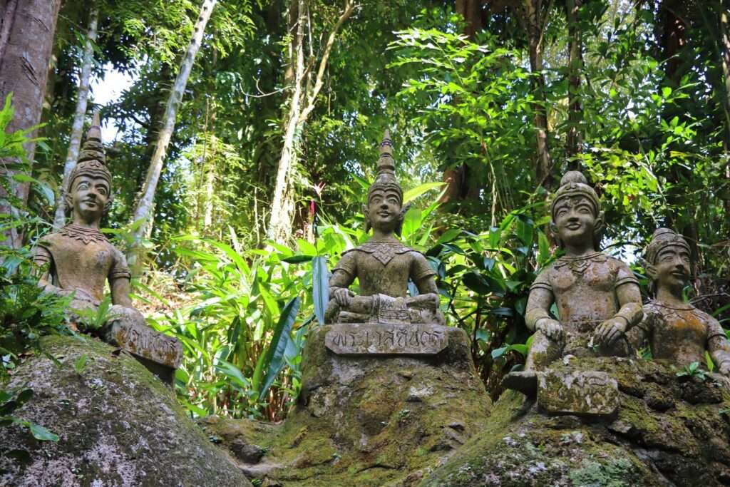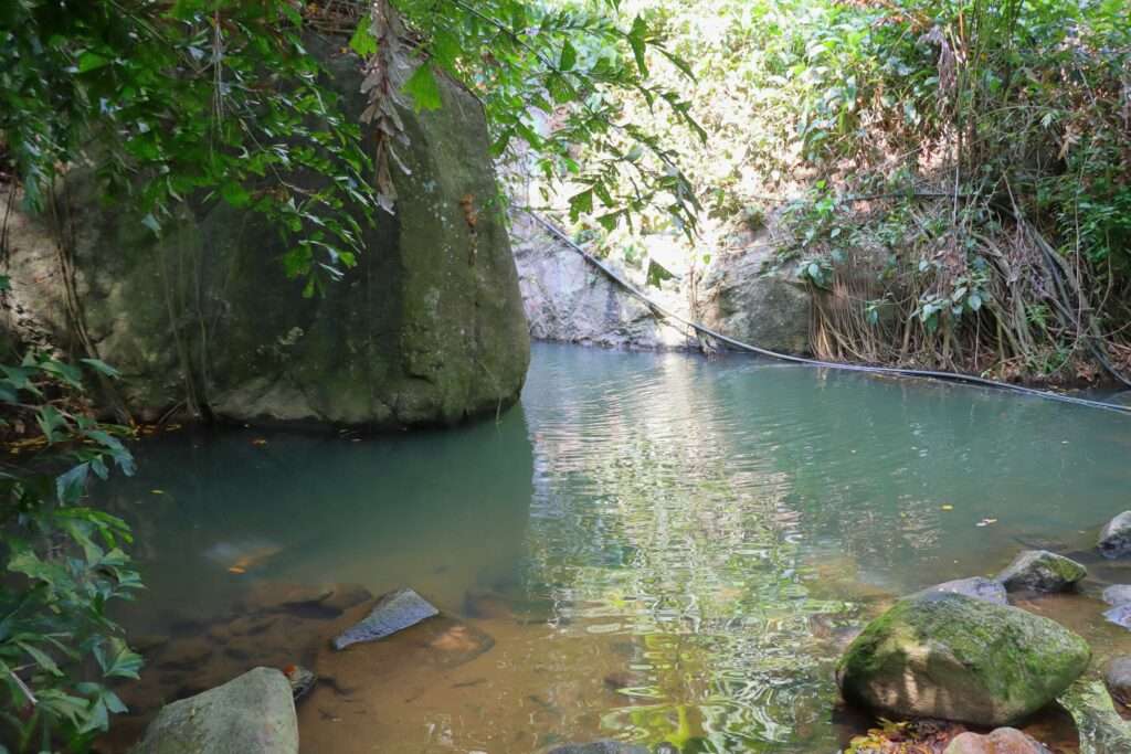 Ce n’est pas la puissance qui impressionne ici, mais la délicatesse. L’eau s’écoule doucement, formant un miroir vert où se reflètent les feuillages. Le bassin invite à la baignade, mais surtout à la contemplation : un lieu où l’on se sent coupé du monde, enveloppé par le murmure de l’eau et le chant des oiseaux. Wang Sao Thong est une halte qui révèle une autre facette de Samui : celle des secrets naturels, des refuges cachés qui se découvrent au détour d’un chemin.