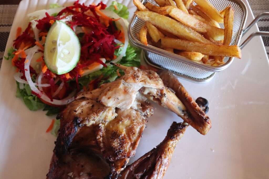 Le soir, même après réservation, le choix s’est un peu élargi, mais les plats restaient très simples : une cuisse de poulet grillé servie avec frites, riz et salade, ou un poisson grillé dont les saveurs n’avaient rien d’exceptionnel.