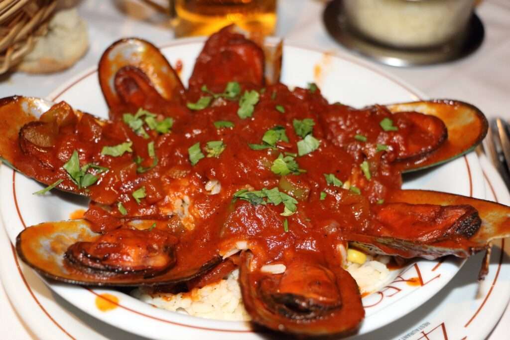 À Santorin, les fruits de mer occupent une place centrale dans l’assiette. Les moules, abondantes dans les eaux de la mer Égée, sont cuisinées de manière simple mais savoureuse. On les retrouve fréquemment dans les tavernes du vieux port d’Ammoudi ou dans les restaurants de Fira, servies en plat principal ou en généreuse entrée.