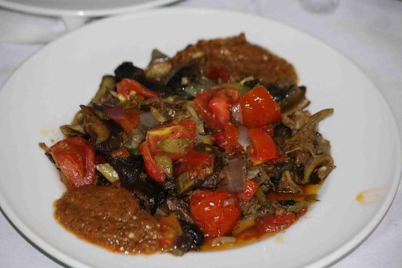 Au fur et à mesure que les aubergines cuisent, elles absorbent les saveurs des ingrédients, devenant tendres et fondantes. La sauce est souvent épaissie avec un peu de pâte d’arachide ou de poudre de manioc, ajoutant une texture onctueuse et une profondeur de goût. Parfois, des morceaux de poisson fumé ou de viande sont ajoutés pour enrichir encore plus le plat.