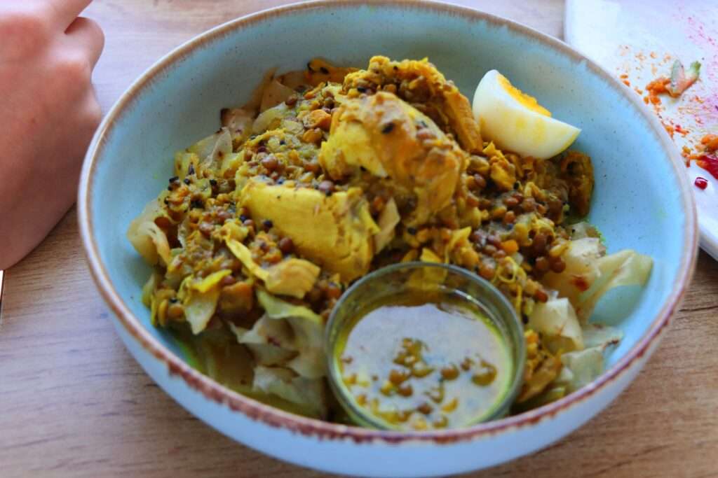 Au restaurant Beldin Babssour, notre aventure culinaire nous a menés à la découverte des abats. Avec une curiosité piquée au vif, nous avons opté pour ce plat exotique et intriguant : le tajine de cervelle d’agneau.
