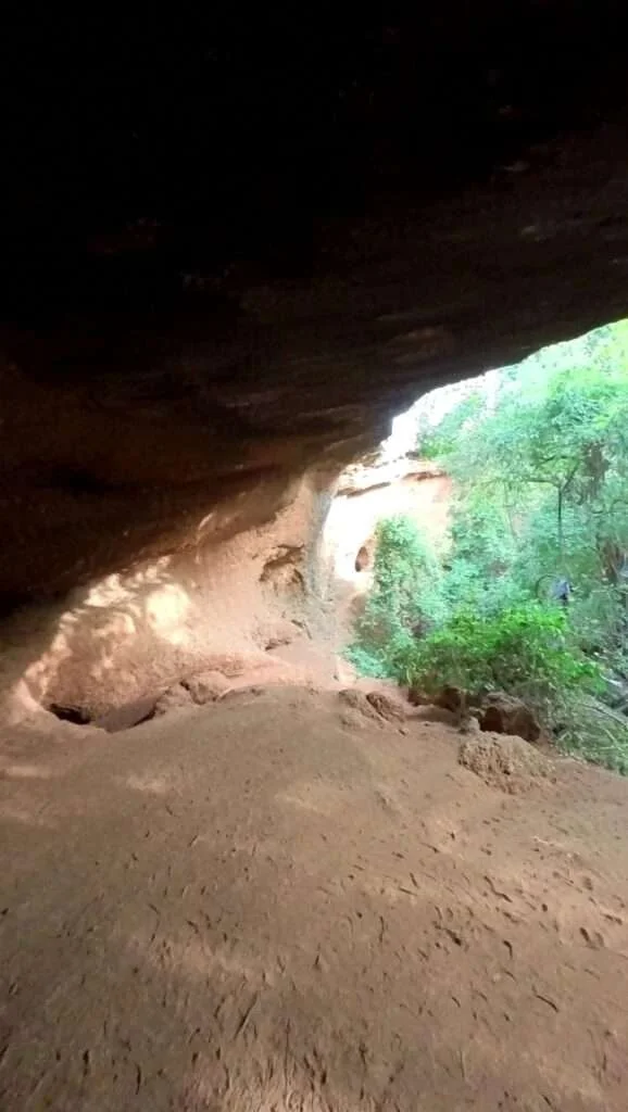 Nous approchons de l’entrée de la grotte, dissimulée par une végétation dense et verdoyante. L’air devient plus frais à mesure que nous nous enfonçons dans la grotte. À l’intérieur, nos lampes frontales révèlent des stalactites et des stalagmites formées au fil des millénaires par les gouttes d’eau minéralisée. Chaque formation raconte une histoire géologique complexe, nous transportant à travers les âges.