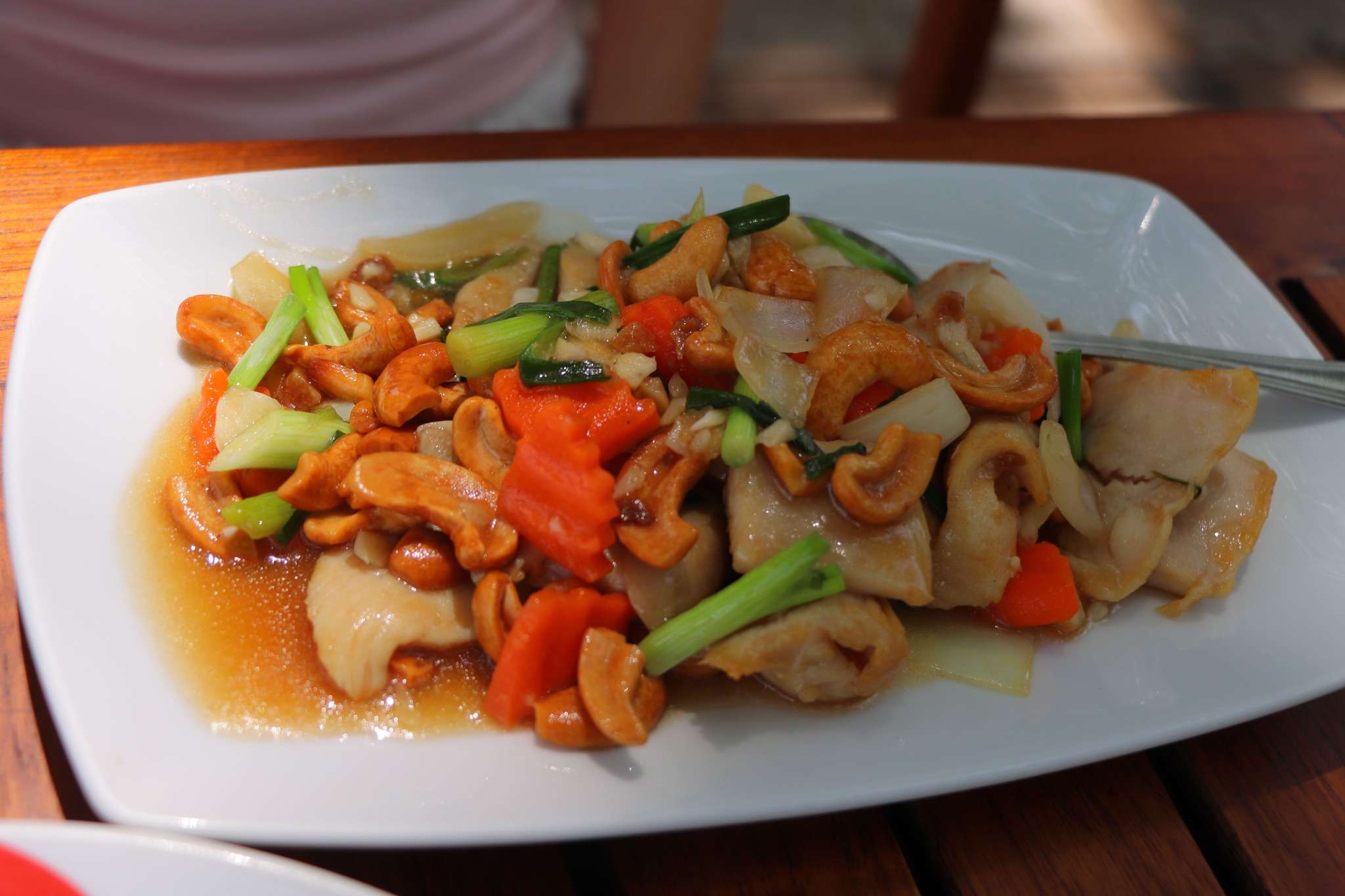 Très vite pourtant, le service nous rappelle que les apparences peuvent être trompeuses. Les plats arrivent dans un ordre si aléatoire qu’il devient presque impossible de partager le repas. Je termine mon assiette de fruits de mer bien avant que Nadège et les enfants ne soient servis, comme si nous déjeunions chacun dans un fuseau horaire différent. Le contraste est d’autant plus surprenant que les plats commandés n’avaient rien de complexe : le Pad Thai de Bastien, enveloppé dans son omelette, ne demandait pas une longue préparation ; le fried chicken and cashew nuts de Margot est un classique des cuisines thaïes, rapide et maîtrisé partout ailleurs ; quant à la chicken in coconut soup with galangal de Nadège, elle aurait dû être l’un de ces plats parfumés et réconfortants que nous avions tant appréciés depuis le début du voyage.