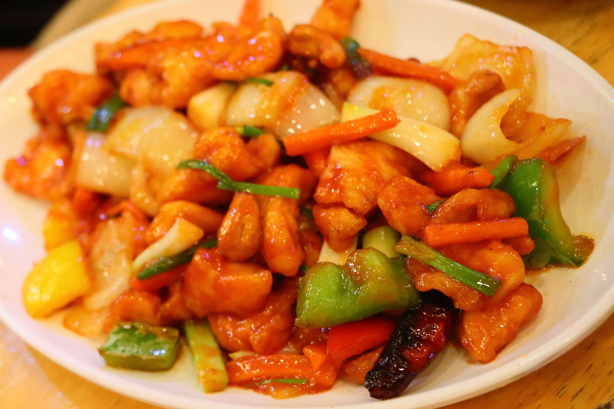 La version au poulet raconte une autre histoire, plus douce, plus familière. Le poulet, tendre et légèrement doré, apporte une rondeur différente, plus réconfortante. Les nouilles absorbent la sauce, les œufs se mêlent aux légumes, et l’ensemble forme un plat qui nourrit autant qu’il apaise. C’est le genre de plat que l’on commande sans réfléchir, celui qui accompagne tout, celui qui met tout le monde d’accord. Un plat qui ne cherche pas à impressionner, mais qui réussit toujours à satisfaire.
