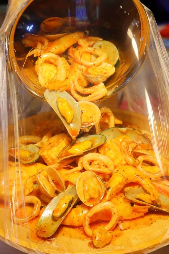 Quelques jours plus tard, au même restaurant, nous découvrons une autre variation : le Seafood Yakisoba Salt. Ici, pas de sauce brune sucrée, mais un assaisonnement léger à base de sel, d’huile et parfois d’un soupçon de citron ou de dashi. Le résultat est plus clair, plus direct, et laisse les ingrédients s’exprimer librement. Les nouilles sont sautées à feu vif, dorées juste ce qu’il faut, et mêlées à des légumes croquants — chou blanc, carotte, oignon vert — qui apportent fraîcheur et texture. Les fruits de mer, eux, sont les véritables vedettes : crevettes, calamars, morceaux de poisson blanc, tous cuits avec précision pour rester tendres et parfumés.