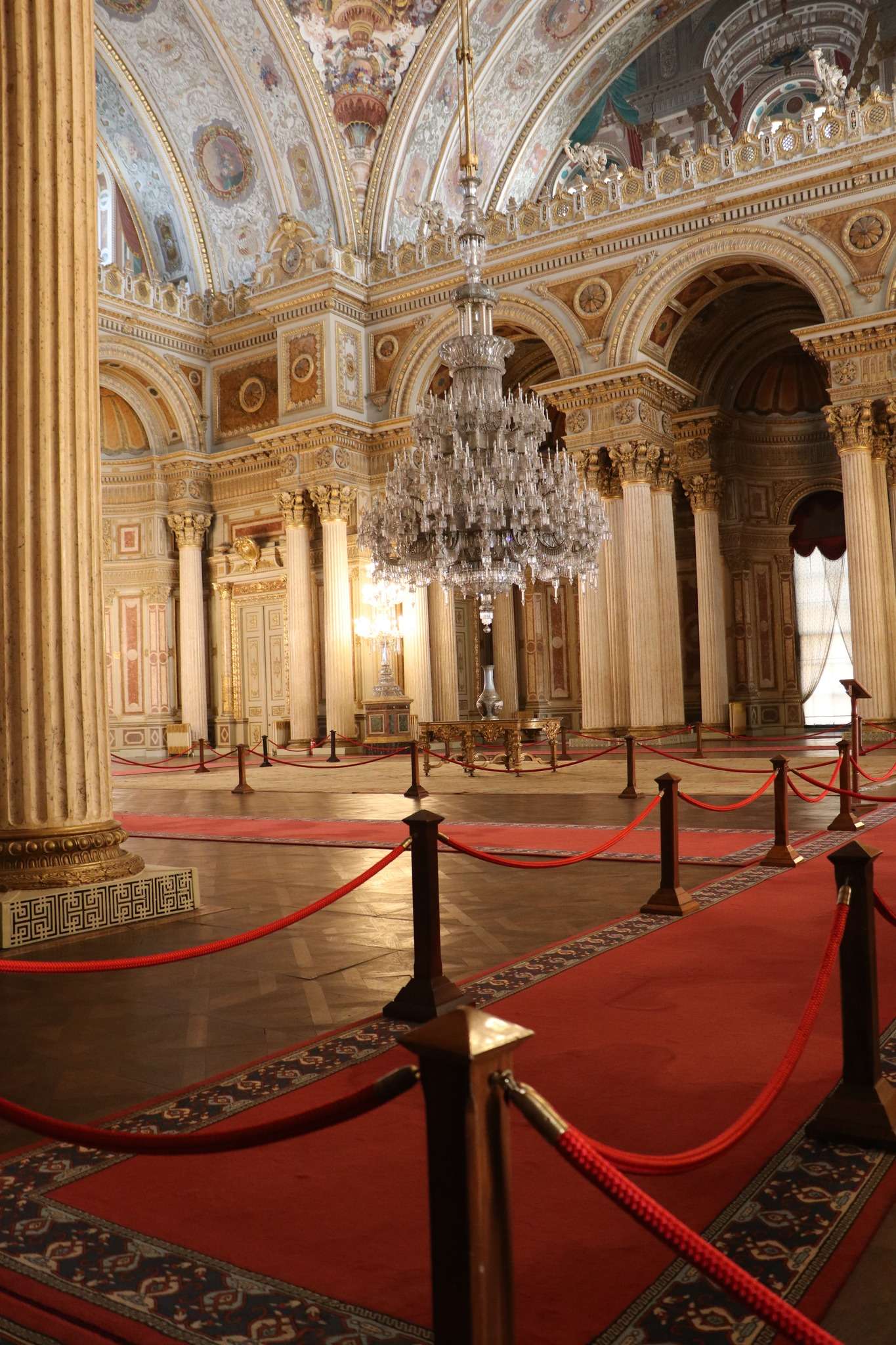 Au cœur du palais, la salle du trône nous coupe le souffle. Sous un dôme de 36 mètres de haut, un tapis Hereke de 124 m²—le plus grand du monde—s’étale, tissé par 60 artisans pendant neuf ans. Le trône en or massif, surmonté d’un dais en soie cramoisie, est encadré par des colonnes de malachite offertes par le tsar Nicolas Ier. Mais c’est le lustre de 4,5 tonnes, cadeau de la reine Victoria, qui captive tous les regards : ses 750 ampoules illuminent 5 000 cristaux en forme de larmes, symbole d’une amitié diplomatique… et d’une dette colossale.