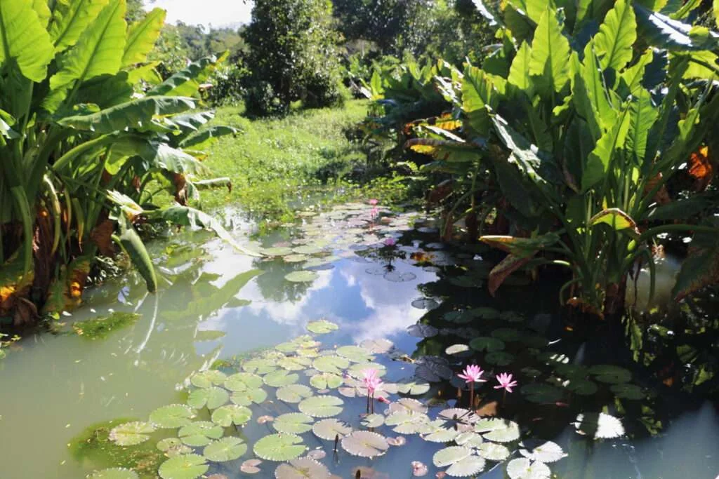 Notre parcours nous a guidés le long d’un paisible ruisseau bordé de plantes à parfums, jusqu’à l’enclos des sangliers et le lac des canards sauvages. Nous avons également découvert une diversité remarquable de plantes grasses et rares, ainsi qu’une large gamme de palmiers. C’est à cet endroit que nous avons observé une autre espèce endémique le crapaud rouge de Madagascar