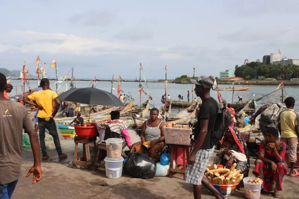 Nous traversons le port, un endroit insolite, coloré, bruyant : les caisses de poissons sont transportées sur la tête, des barracudas sont posés sur les toits de voiture et parfois même à l’intérieur, leur tête passant par la fenêtre. L’activité est intense.