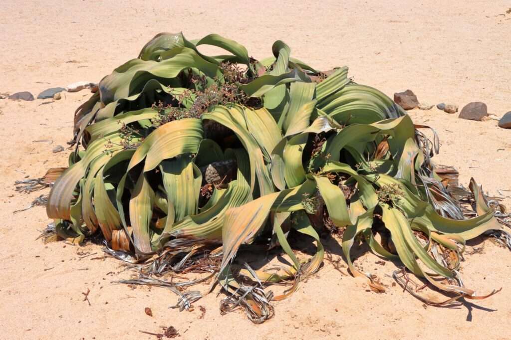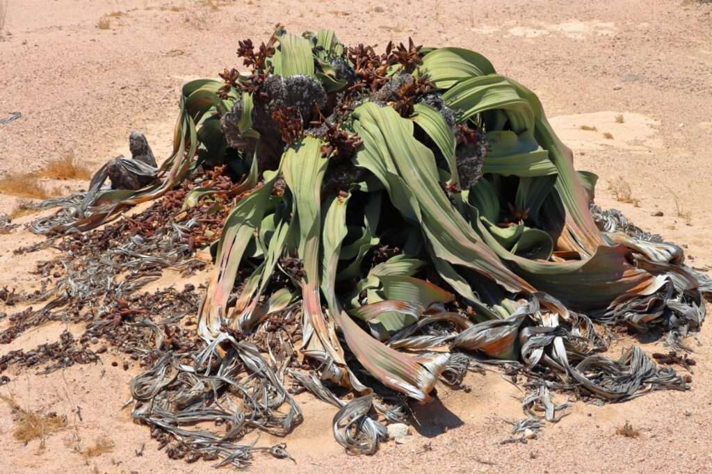 Nous nous attardons longuement auprès d’elles. Leurs cônes mâles ou femelles montent comme des chandelles discrètes, rappelant que ces plantes sont unisexuées ; leurs feuilles abritent insectes et reptiles ; leurs graines nourrissent parfois rongeurs et oiseaux. Le Welwitschia n’est pas une curiosité botanique : c’est une espèce structurante, un conifère nain unique au monde, un monument biologique, un repère dans l’immensité du Namib.