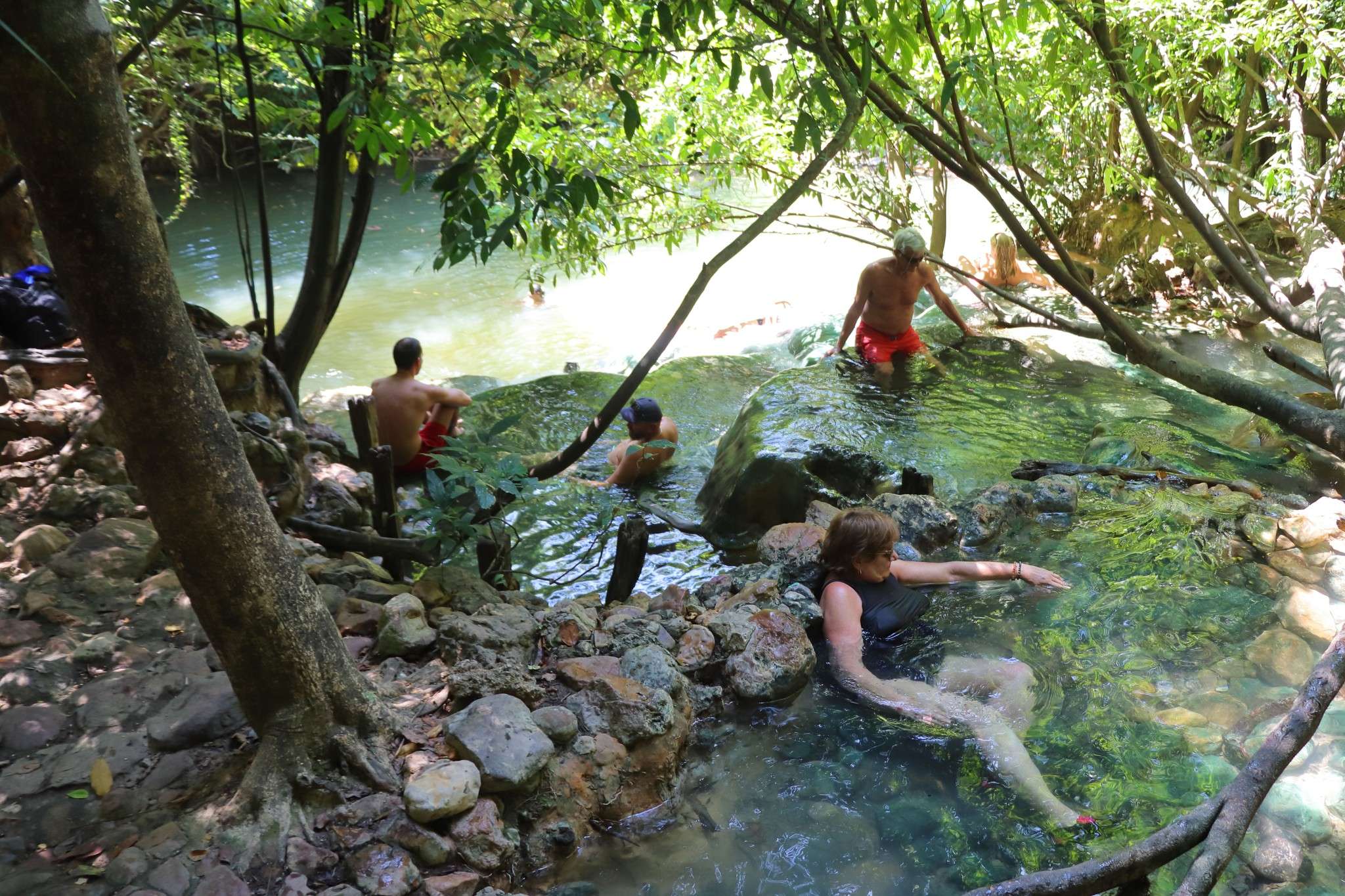 L’atmosphère est presque irréelle. Une jungle tropicale, un ruisseau chaud, des bassins naturels étagés… On alterne entre immersion et pause à l’ombre, entre chaleur enveloppante et respiration profonde. Le corps ralentit. Le bruit de l’eau devient régulier, presque méditatif.