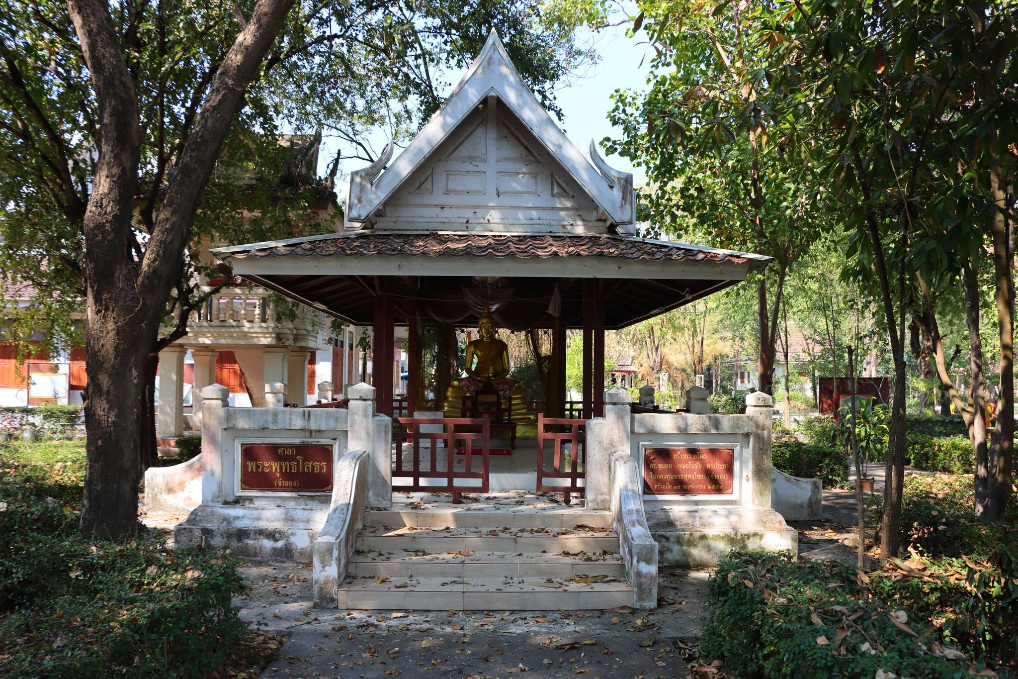 En traversant le pont, nous ressentons cette transition. Le bruit s’atténue, les lotus s’ouvrent, les reflets se multiplient. L’ordination devient un acte suspendu entre ciel et eau, entre le monde et le Dharma. Le Wat Traphang Ngoen ne cherche pas à impressionner : il invite à la méditation fluide, à la contemplation silencieuse, à l’écoute du vent dans les feuilles.