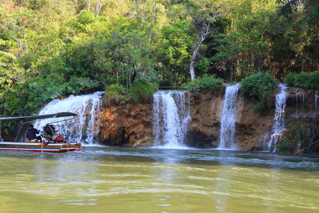En tournant à droite après le pont, à une cinquantaine de mètres, nous faisons halte à Sai Yok Noi, une autre cascade, plus discrète mais tout aussi charmante. Un petit pont de bois permet d’en approcher le cœur, et une plateforme offre une vue panoramique. Le murmure de l’eau, les cris des oiseaux et les ombres mouvantes des feuillages donnent au lieu une atmosphère hors du temps.