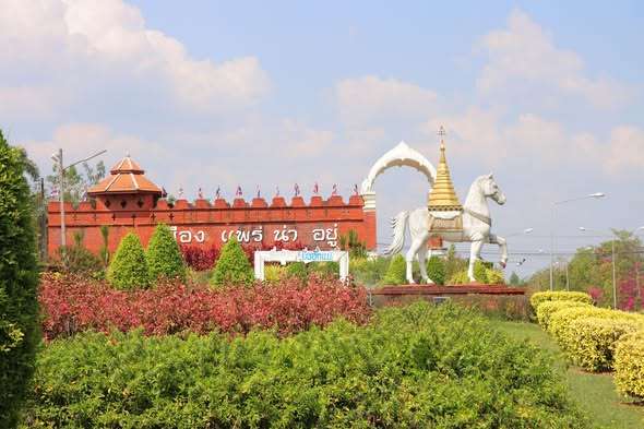 Autour de la porte, l’aménagement paysager renforce cette impression de mise en scène. Les fleurs, les arbres, les couleurs vives créent une atmosphère presque festive, comme si la ville voulait offrir un dernier sourire avant le départ. C’est un lieu qui respire la fierté locale, un message visuel qui dit : “Phrae est une ville où il fait bon vivre, et vous êtes les bienvenus pour revenir.”